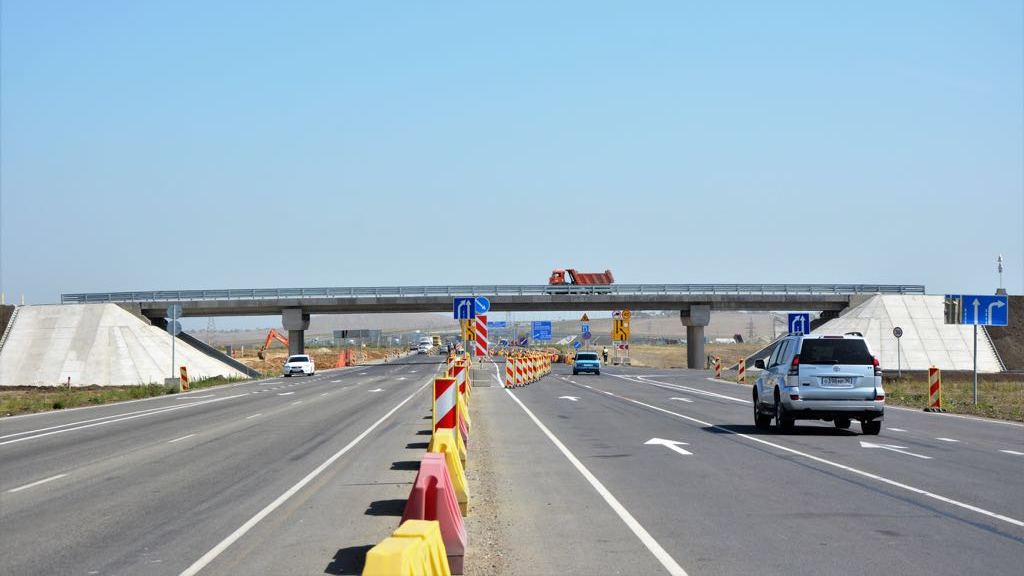 Напомним, что рабочее движение по автоподходу было открыто одновременно с пуском автомобильного движения по Крымскому мосту 16 мая 2018 года. К этому моменту на всей протяженности автоподхода была завершена укладка двух слоев асфальтобетона, завершено строительство путепровода тоннельного типа, путепровода в составе Шоссе Героев Сталинграда и керченская транспортная развязка.
